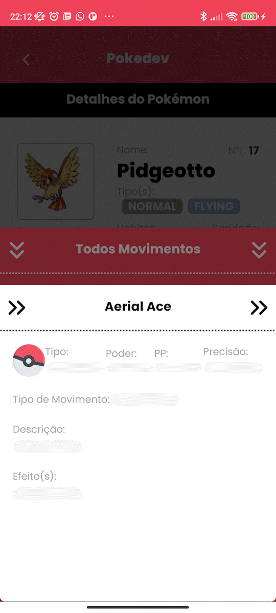 - O botão de todos movimentos não é mostrado caso o pokémon não tenha mais de 4 movimentos, ou seja, o modal não é acessível caso todos movimentos do pokémon já estejam sendo mostrado na página de detalhes de pokémon(ate 4).