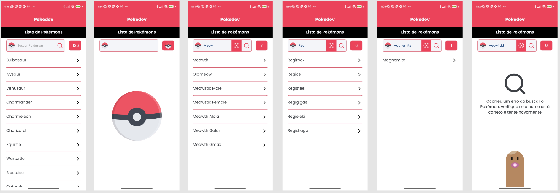 O projeto PokeDev é um aplicativo mobile que simula uma pokedex do jogos e anime Pokémon.