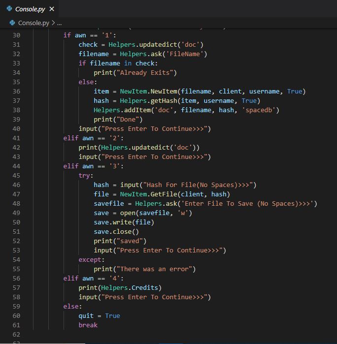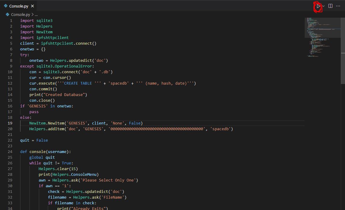 To create a new file on IPFS please run "console.py", then select a username by typing it into the CMD -