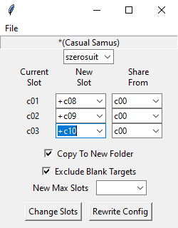 Courtesy of CoolSonicKirby and WuBoy, this will also generate the proper config for you to use! Once the reslotter is finished, it should be ready to be added directly to your switch. If you need more slots, you can manually type in the dropdown box the slot you need (ie +c21), or you can edit the reslotterGUI.py script at line 18. It should be a variable called root.maxSlots, which is defaulted at 11.