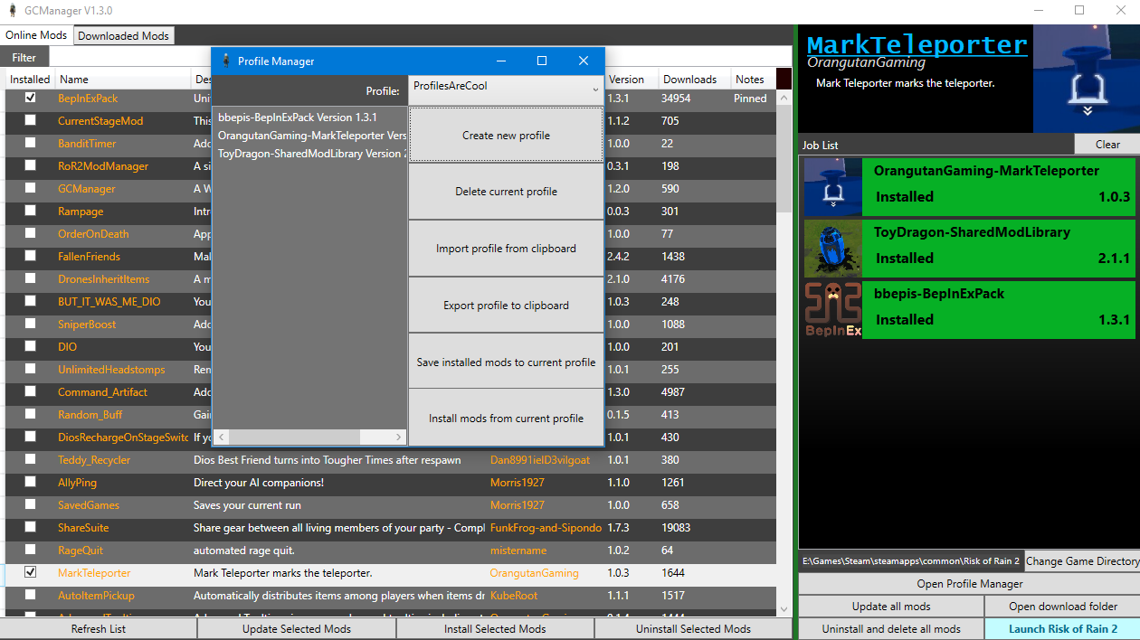 A Risk of Rain 2 Mod manager featuring: