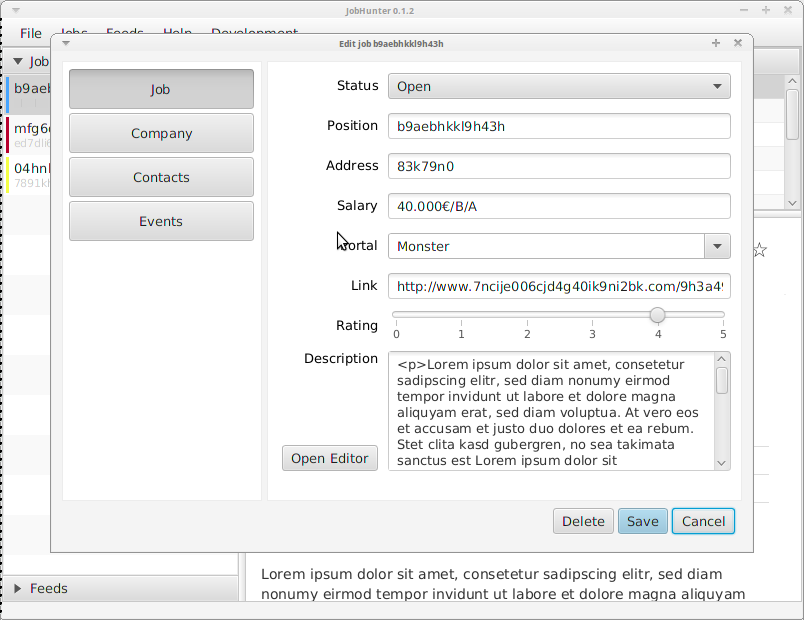 JobHunter also works as a RSS feed reader which you can use to consume the feeds provided by different job portals to stay always up-to-date with new jobs.