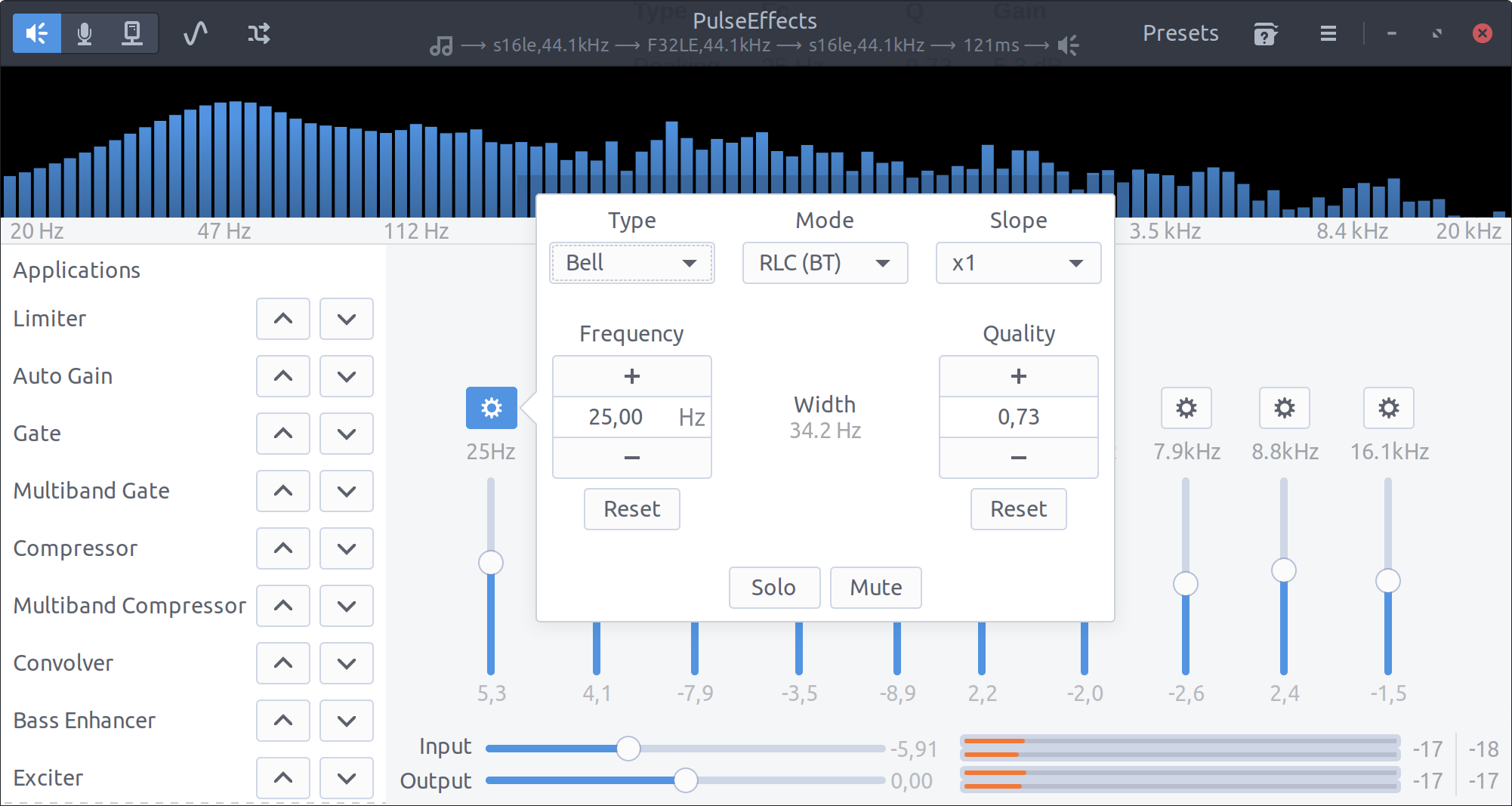 All parametric equalizer except Peace require you to configure the filter parameters manually with the software user