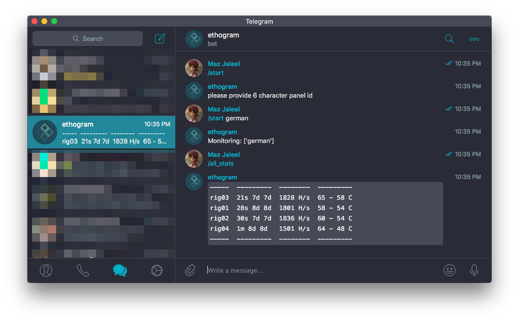 Telegram bot for ethOS!