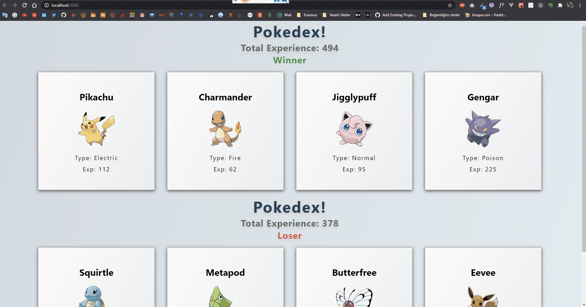 DATAin this component we are keeping our data in this array. Also we are creating two teams randomly and getting total experience of each team and deciding to winner and passing teams and winner status toPokedexcomponent. -
