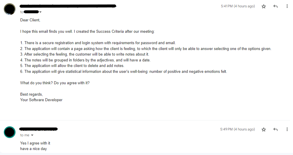 After meeting with the client ans sending her an email (See Appendix B), we agreed the following success criteria: