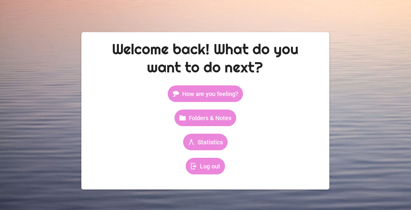 My client and me reunited in a 10-minute meeting. She wants a mood tracker app. Log in and register Main page with a box asking what is your mood today? You can only answer with one word: Sad, happy, anxious, excited. List of options, you click one. Notes screen. Every adjective has a different folder in which she writes. She writes in the page she has the feeling. Delete and add notes options.