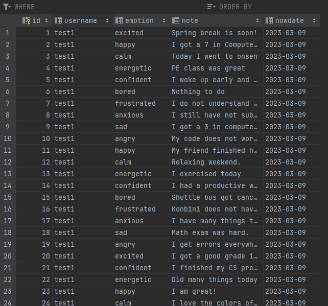query = f"SELECT COUNT(emotion) FROM notes WHERE username='{my_username}';"