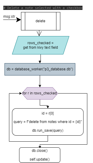 Fig. 7: Flow diagram of the delete function in the AllNotes class.