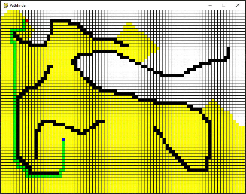 A pathfinding viewer that use Dijkstra's algorithm to find the shortest path from start (blue square) to end (red square).