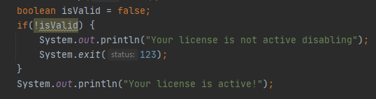 Idea to create that simple hook was born when i saw a lot of system licenses in minecraft plugins on MC-Market working in that way, when valid pass it through, but when invalid call JVM Exit. This way completely bypass that checks and causes the virtual machine to move on next instructions. Hook and the way is very simple :)