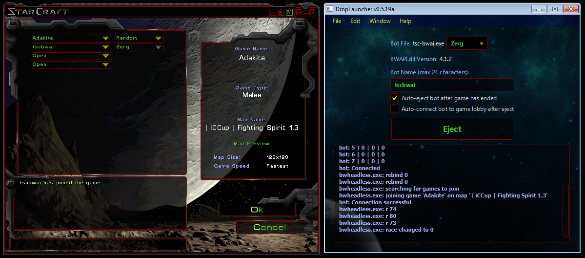 DropLauncher is designed to be a simple tool to aid players in setting up and playing 1v1 StarCraft: Brood War games against any BWAPI bot using Local Area Network (UDP) as the connection type. Optional/Recommended: Make a copy of your StarCraft directory and let DropLauncher use that copy for the BWAPI bot.