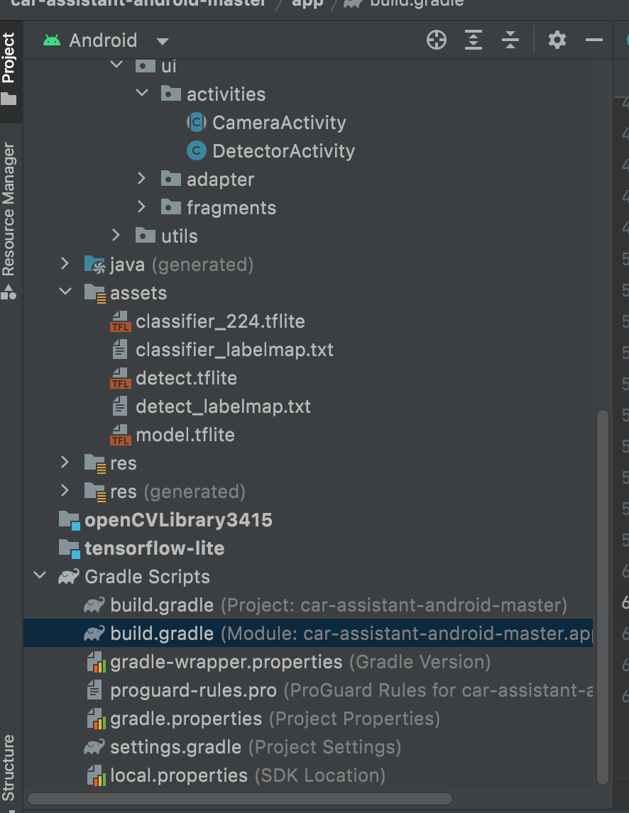 We decided to use Android studio to implement our application in order to detect the objects and the street signs, it was very hard to combine both of them, due to lack of resources repos on github, and usually the code is implemented in Python not in java.: PSB the result that we achieved using OpenCV and TensorFlow Lite model