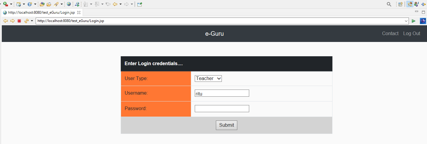 To proceed further from here only after your are sure you have run all sql queries and insert queries, you may login and continue. Once inserted a username and password for the corresponding role (Student/Teacher/Mentor), you can now access the webpage to login and proceed further to use the webapp locally. For eg as shown in the screenshot select Role as Teacher and fill the username: ritu and password: ritu123 And you should be good to go !!!