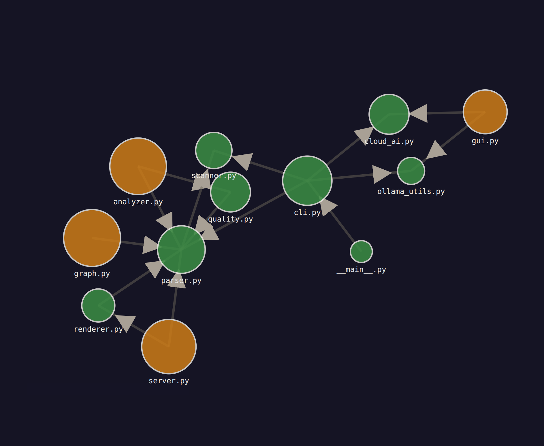 Architecture mode — dependency graph showing files as nodes with directed edges