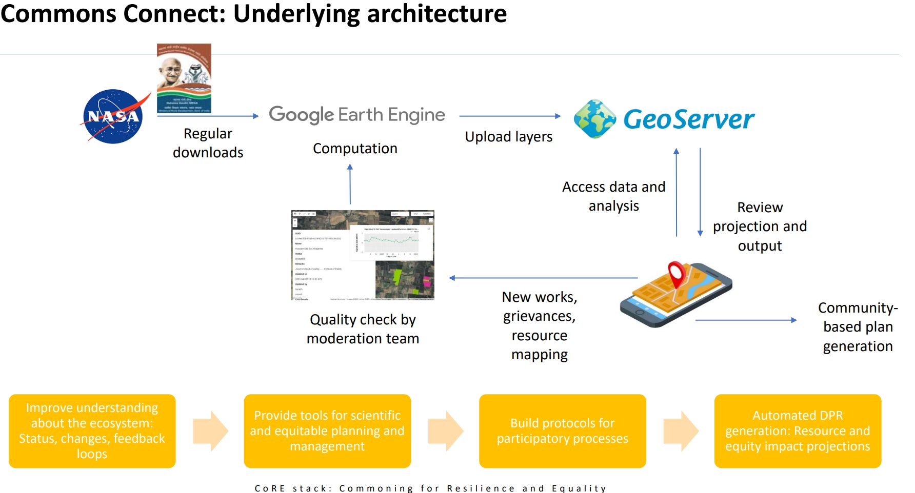 CoRE Stack: Commoning for Resilience and Equality is a social-tech enterprise dedicated to empowering underserved communities in low-resource and remote areas. Through our innovative participatory tech platforms, we foster community awareness of various pathways for resilience and development, promoting scientific decision-making and improved solidarity. We focus on strengthening community institutions to ensure equity and alignment along these pathways. Our commitment includes responsible AI practices, ethical considerations, and the use of open-source tools for transparent and accountable development. By enhancing understanding within communities and enabling them to manage natural resources, we contribute to a more sustainable, climate-resilient future with a focus on fairness, inclusivity, and environmental sustainability.