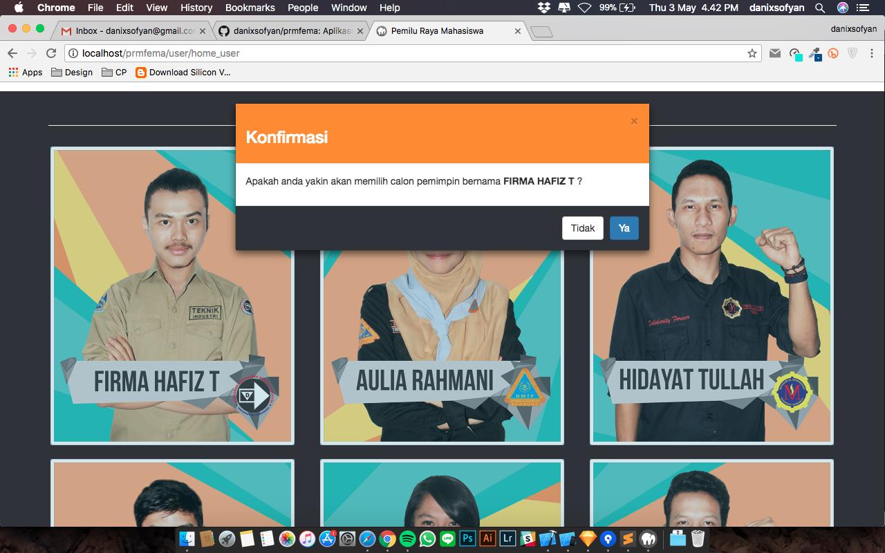 - user untuk voting (disesuaikan jumlah bilik suara) Syarat komputer server: Sudah terinstall aplikasi webserver (XAMPP / MAPP) Syarat komputer klien: Sudah terinstall browser (chrome, mozila) Konfigurasi aplikasi PRM di computer server