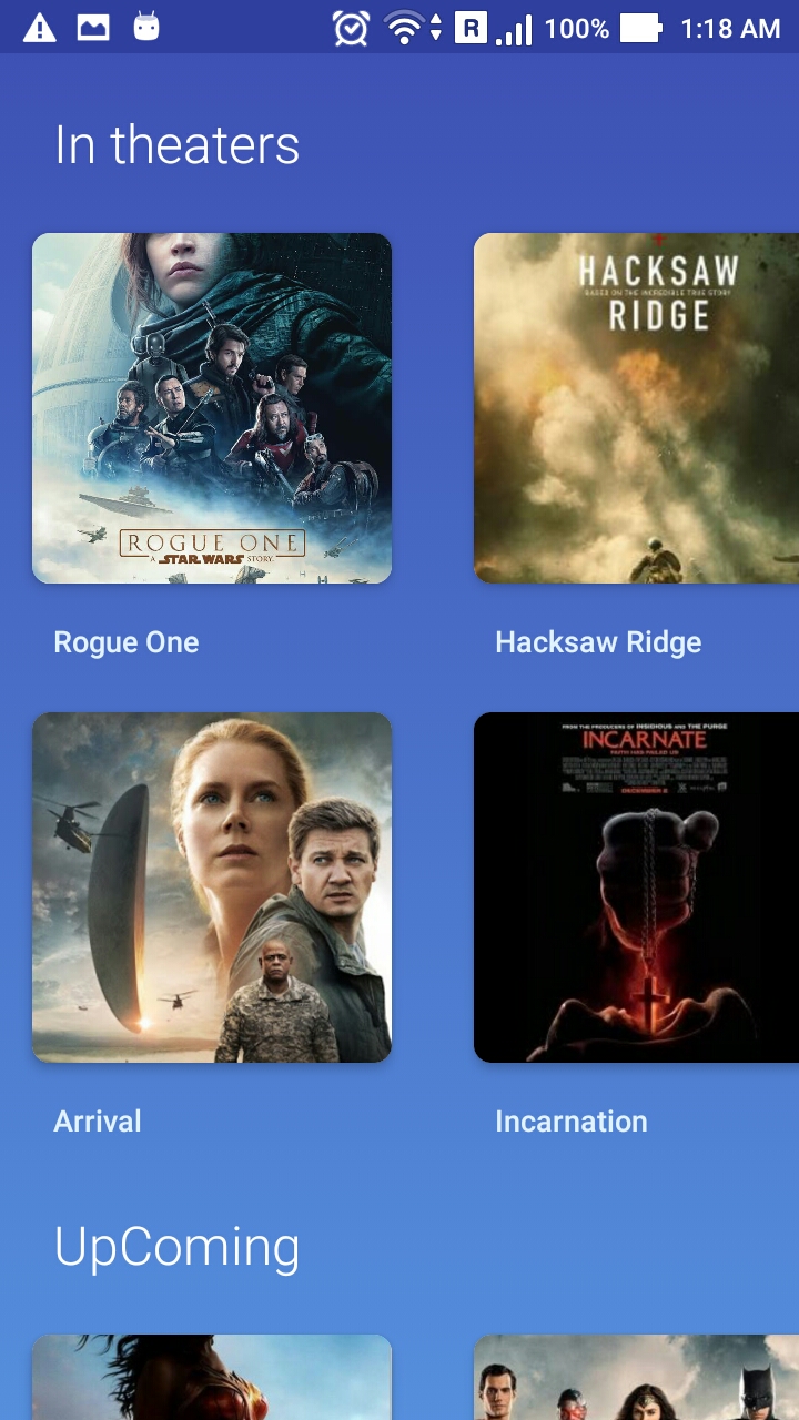 - Movie app which shows trailers and plot for upcoming and In-theater movies