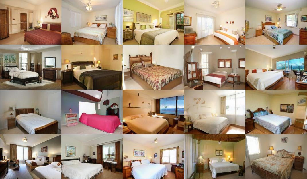 python generate.py --gpus 0 --model gdrive:bedrooms-snapshot.pkl --output-dir images --images-num 32You can use --truncation-psi to control the generated images quality/diversity trade-off.
