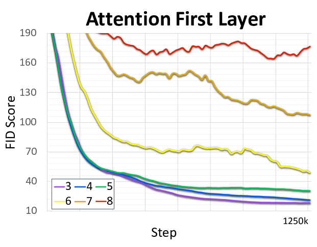 - Self Attention between image features (SAGAN model): prior approaches used attention directly between the image features, but this method does not scale well due to the quadratic number of features which becomes very high for high-resolutions.