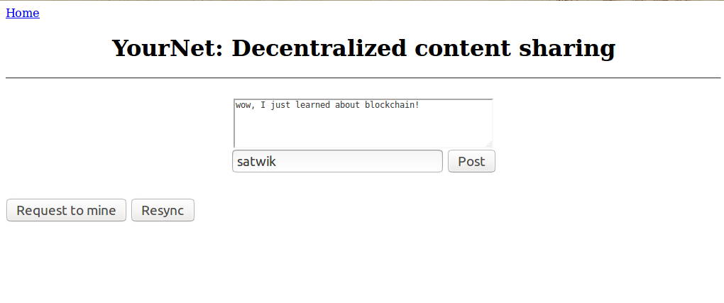 下图展示了如何利用web界面向我们的仿真区块链提交内容: