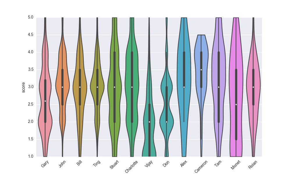 violin plot showing distribution of scores per person