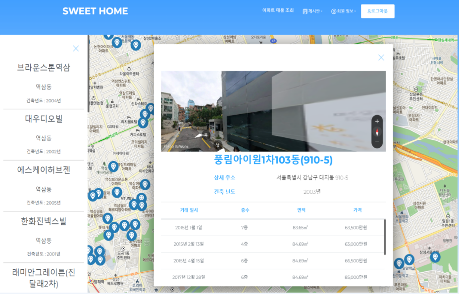- 공공 데이터를 활용한 아파트 거래 정보 검색 사이트
