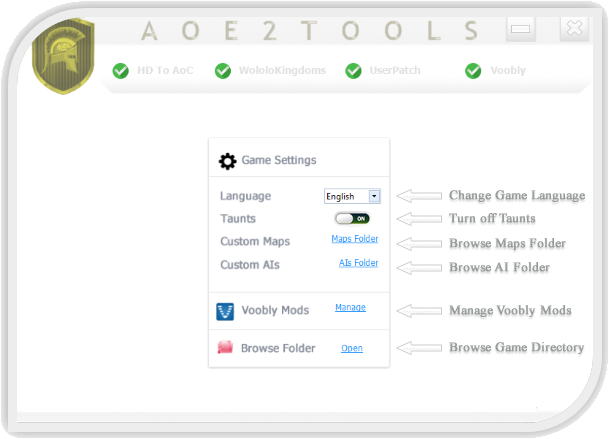 - Install offline Mods or Voobly Mods directly to your game.