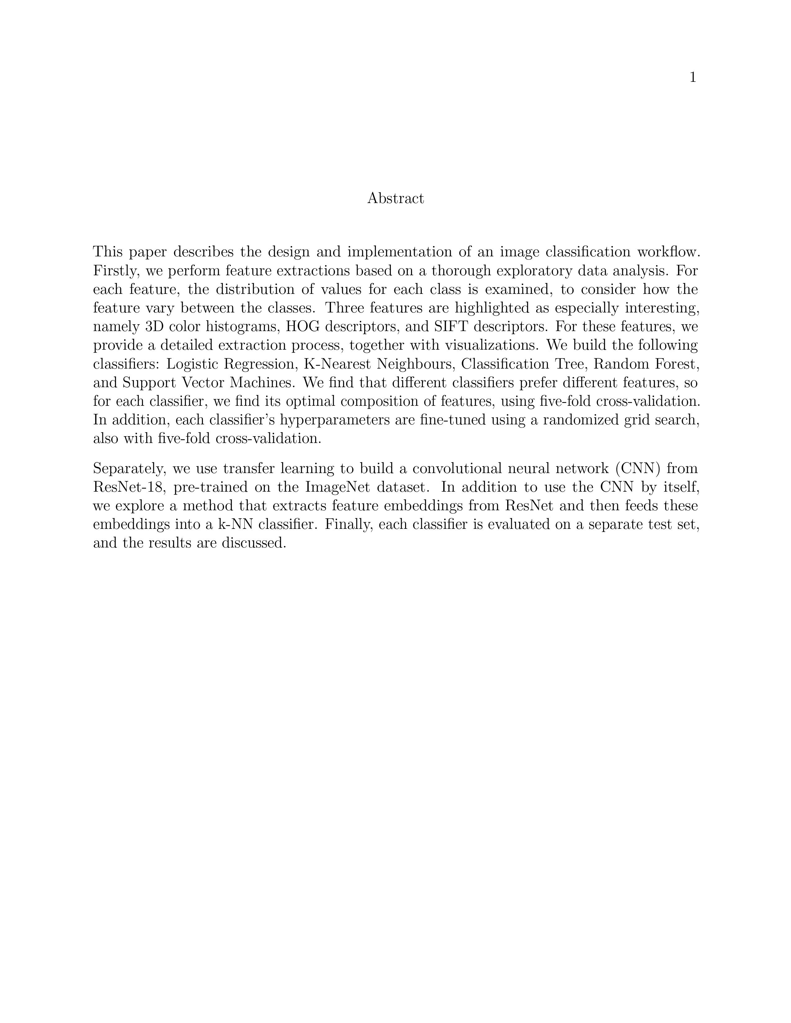 Image classification using extensive feature extraction with simple classifiers in addition to transfer learning using CNNs (CS200 at UC Berkeley)