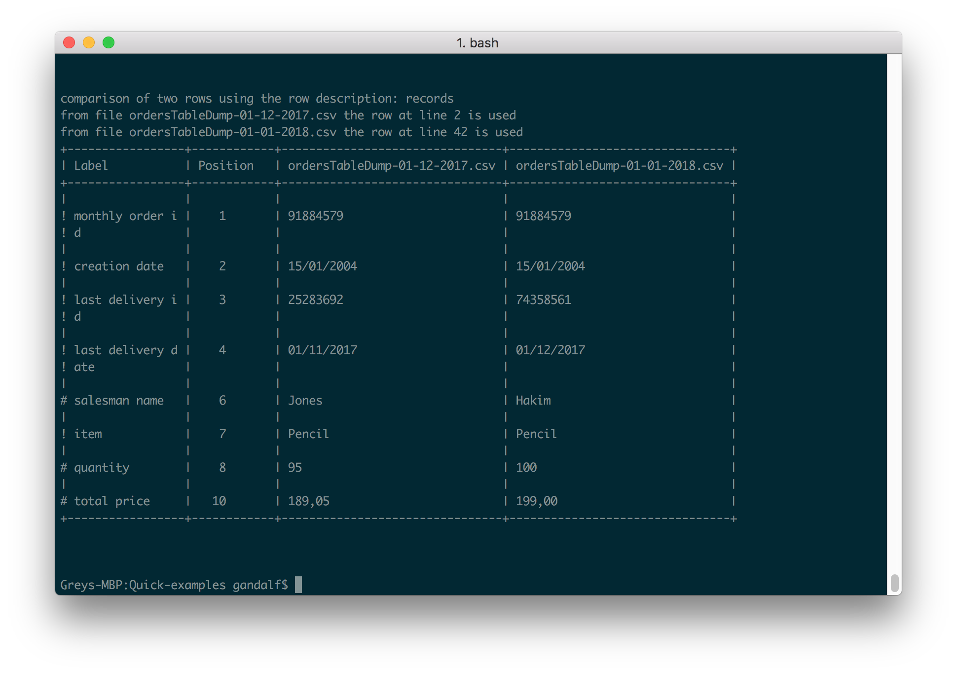 Quick is a customizable comparison tool that calculates and displays side by side differences between two flat files in an easy to read format.