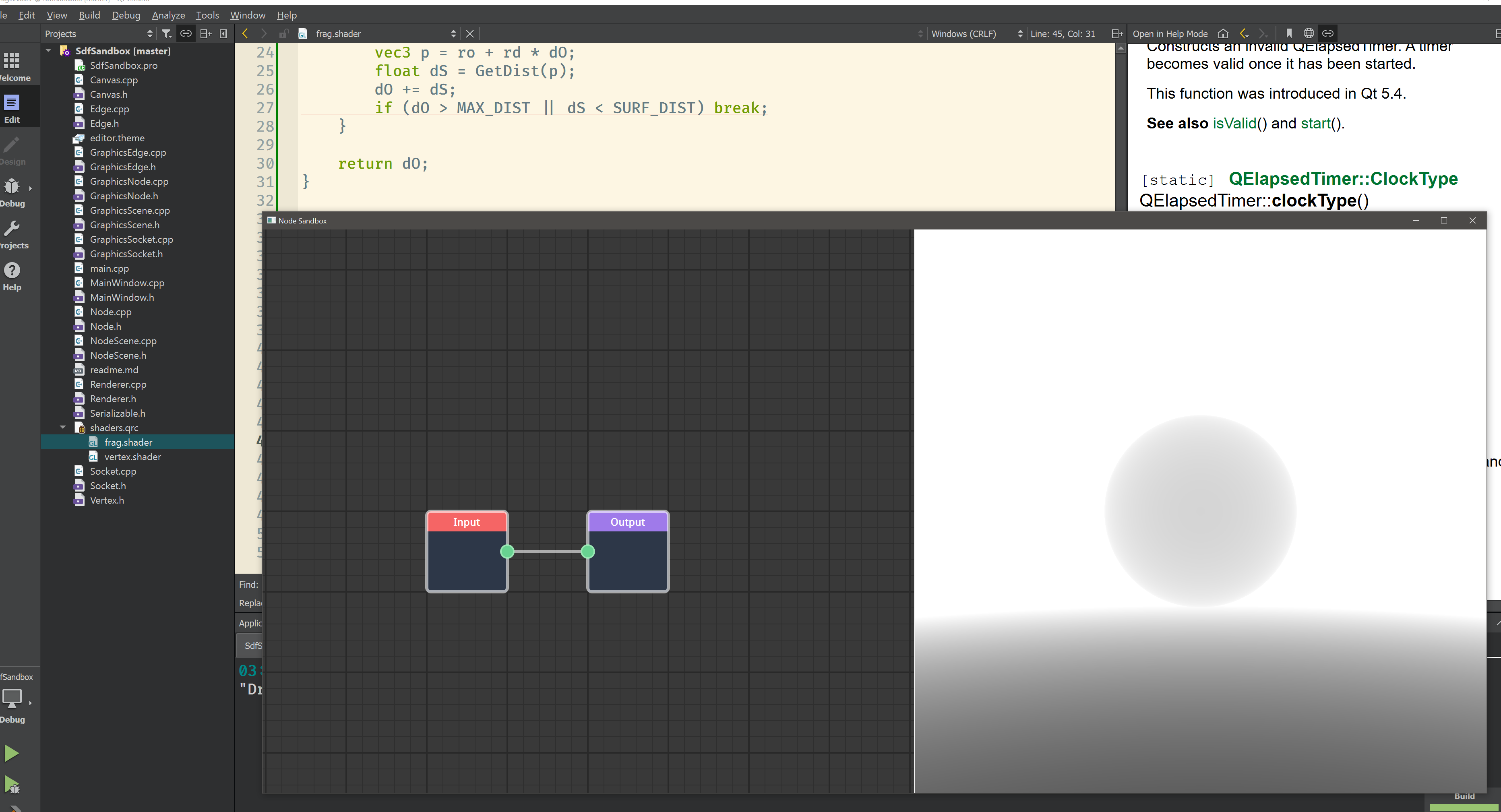This is work in progress... very experimental. The end goal is to recreate Happy Jumping by iq entirely with nodes. This is invalid, just testing sockets and connections at the time. Heh.