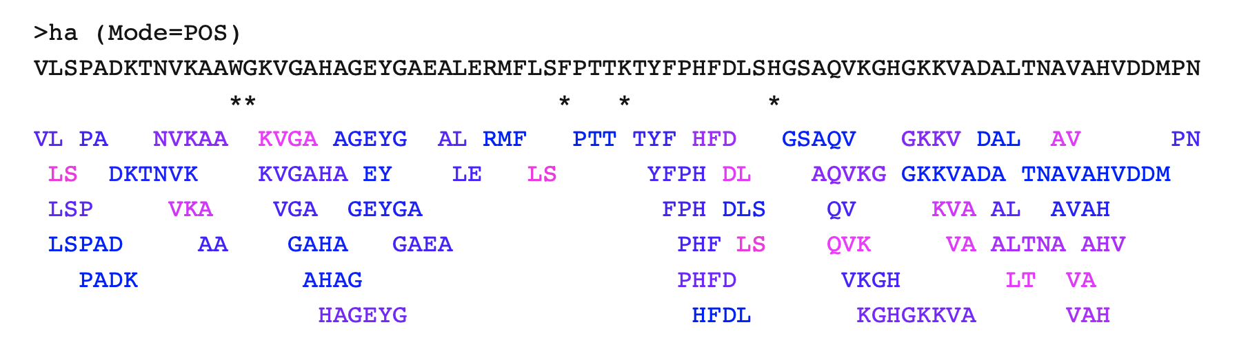 The * above indicates a region that is not covered. In addition they wanted to display different peptides with colors as well.