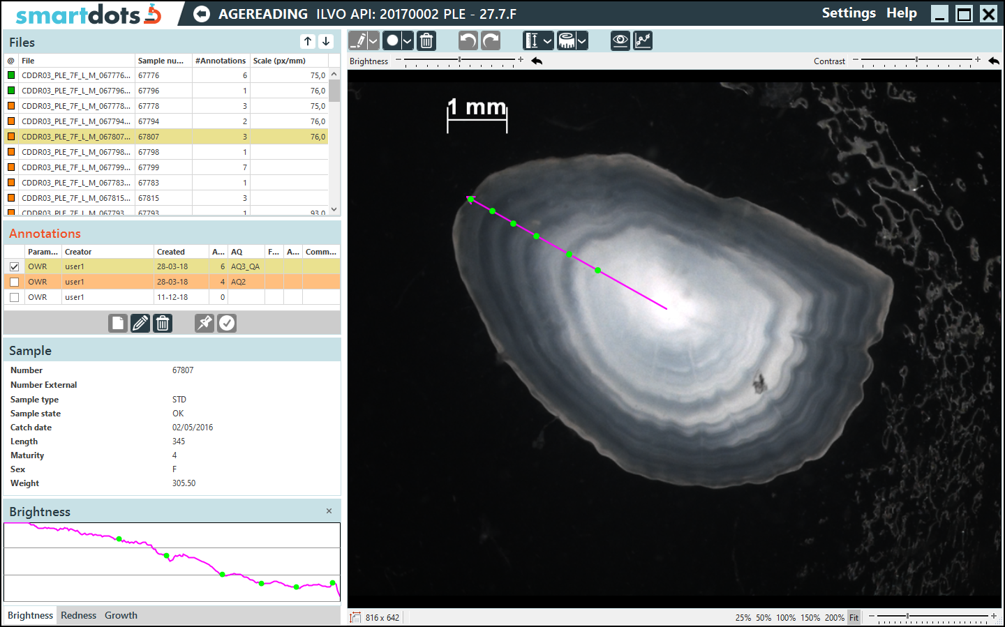 SmartDots is the otolith reading software developed by ILVO in collaboration with ICES, used for annotating biological parameters such as fish age in workshops and exchanges.