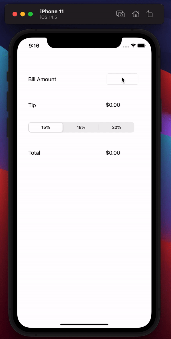 - Making sure the keyboard is always visible and the bill amount is always the first responder. This way the user doesn't have to tap anywhere to use this app. Just launch the app and start typing.