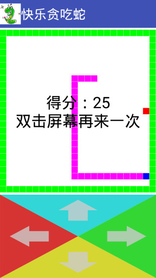 HappySnake 快乐贪吃蛇 大家好,我是成宇佳。 这是我写的一个Android版贪吃蛇游戏,如果有需要可以拿来参考。欢迎点击“Fork”,也欢迎点击“Star”。:) 我在我的博客里为该游戏写了一份比较详细的教程,教程地址为:http://www.cnblogs.com/chengyujia/p/5787111.html 该APP已经在腾讯应用宝上线,下载地址为:http://sj.qq.com/myapp/detail.htm?apkName=net.chengyujia.happysnake 下面是游戏截图:
