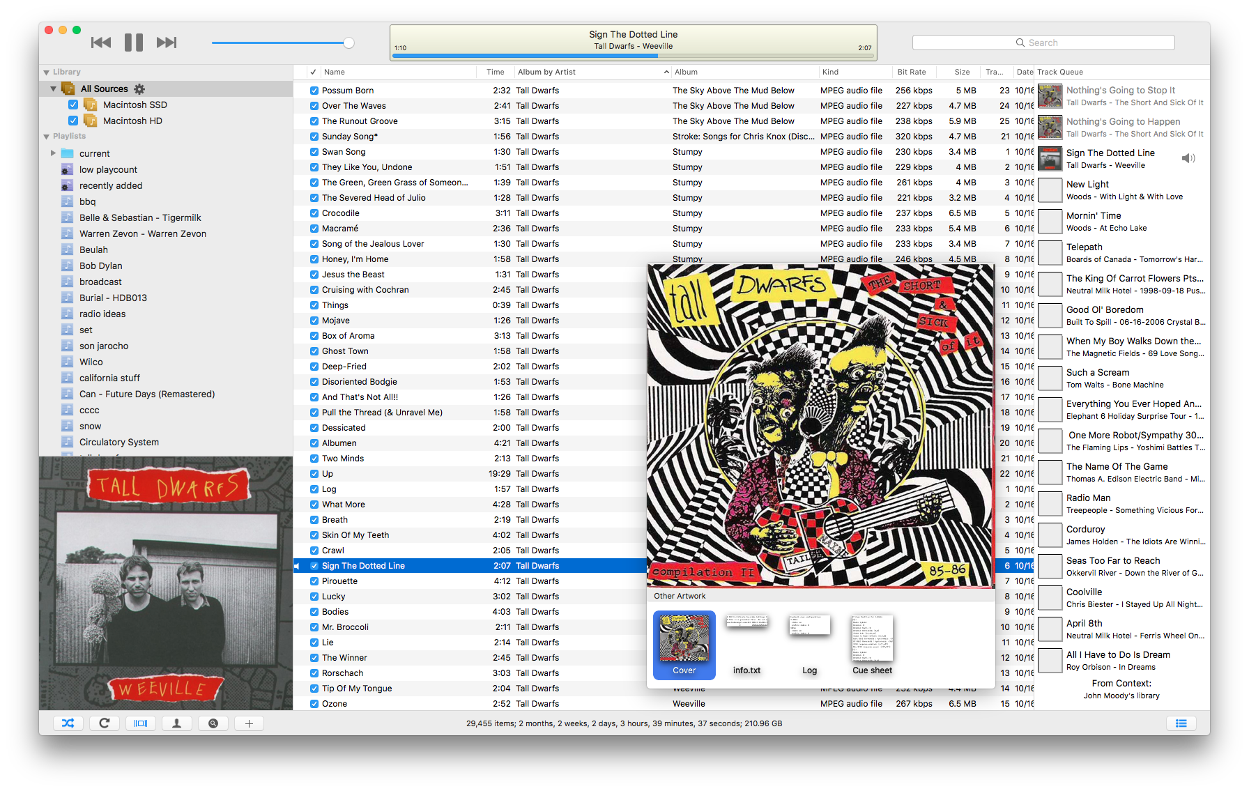 jmc accounts for media spread across external volumes, showing available and unavailable volumes in the sidebar and filtering the music in your library accordingly.
