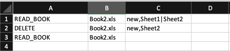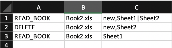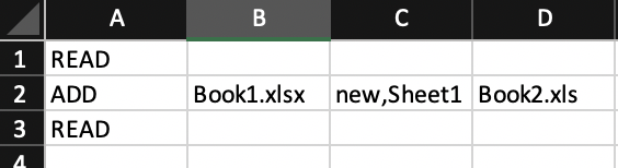 commandSheet contains all the commands to perform the operations on workbooks in your resourceBook folder.