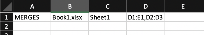 This will give all the merged cell ranges in a worksheet of a workbook as ',' separated list.