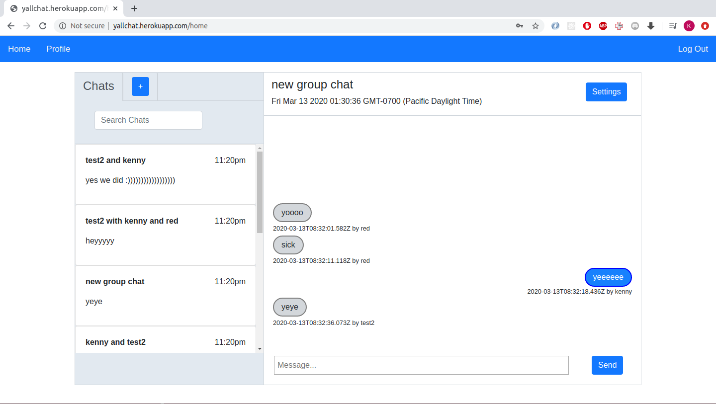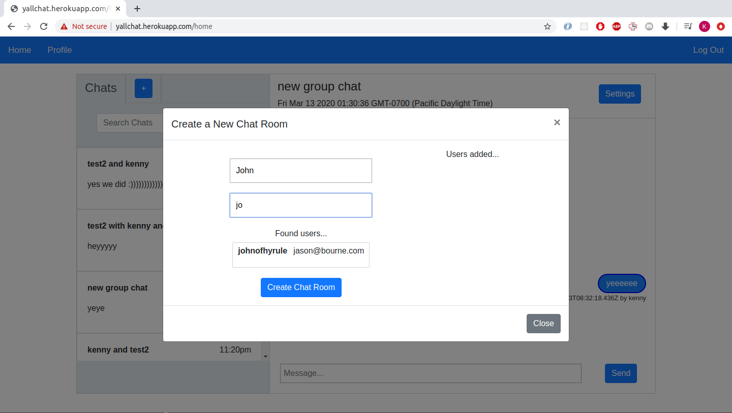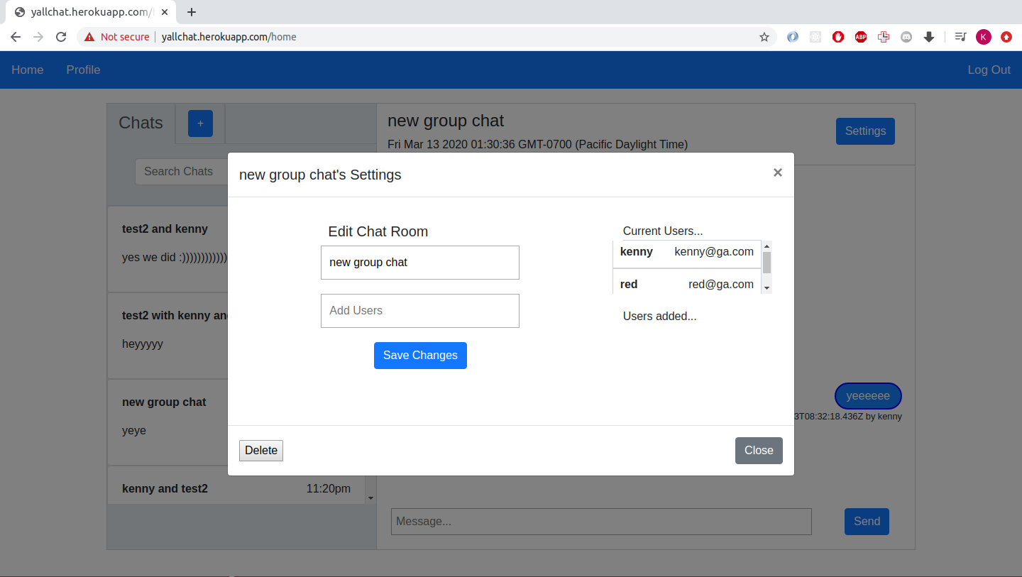 Hello, welcome to YallChat, a full stack web application for group and individual messaging.