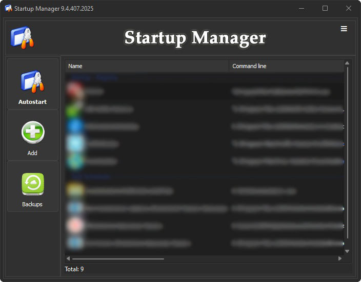 Startup Manager — менеджер записанных программ. в автозагрузке.