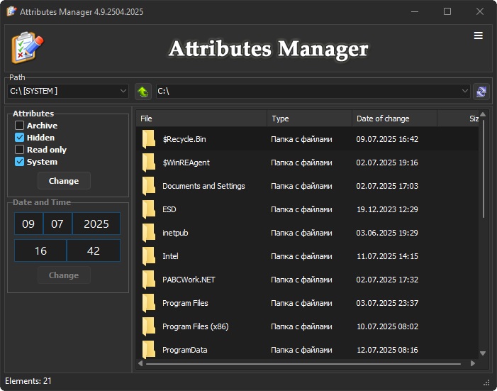 Attributes Manager — программа для изменения атрибутов файлов.