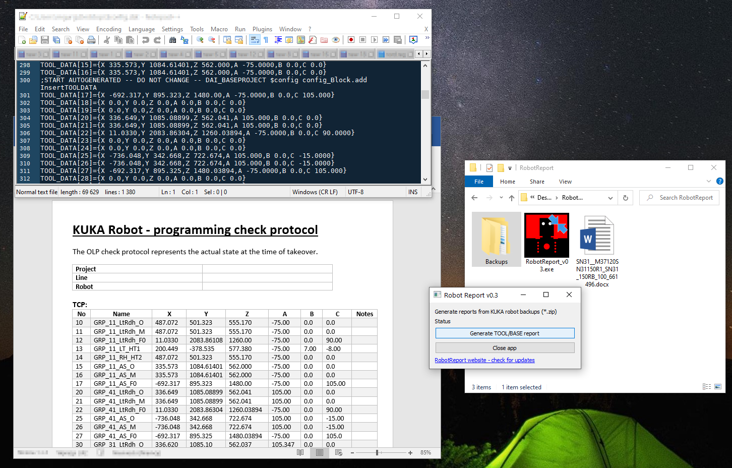 Robot report Generate Tool/Base report from your KUKA robots backups video Screenshots Contact Check updates at @robotics_book