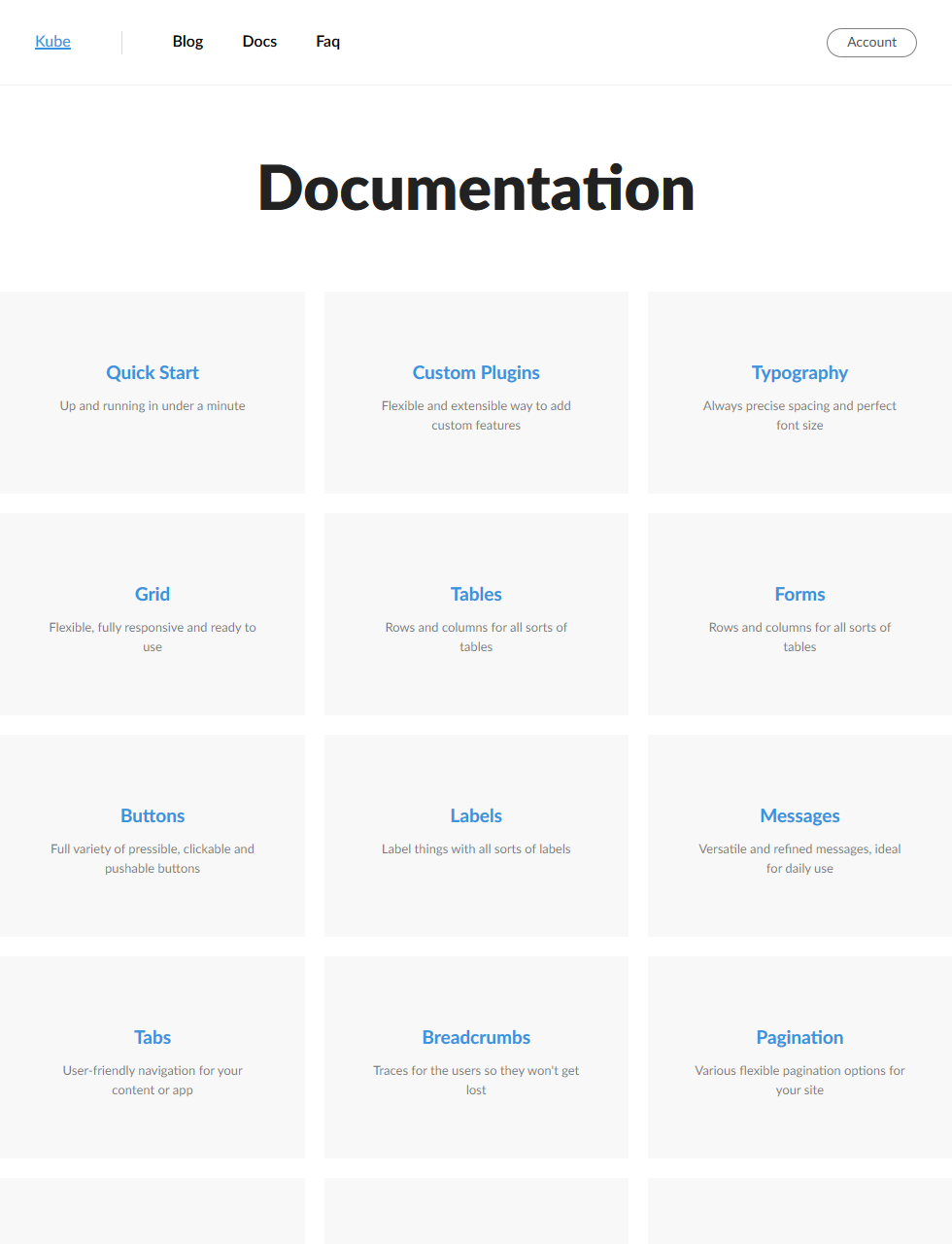 - Horizontal Rhythm : Like Kube framework this theme is based on a 4px vertical grid.