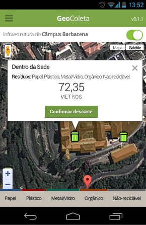Em fase de implantação no Câmpus por meio do projeto "Implantação de um Sistema de Informação Geográfica para gerência e incentivo ao Processo de Coleta Seletiva no Instituto Federal do Sudeste de Minas Gerais, Câmpus Barbacena", aprovado no Edital 01/2013 - Nível Técnico.