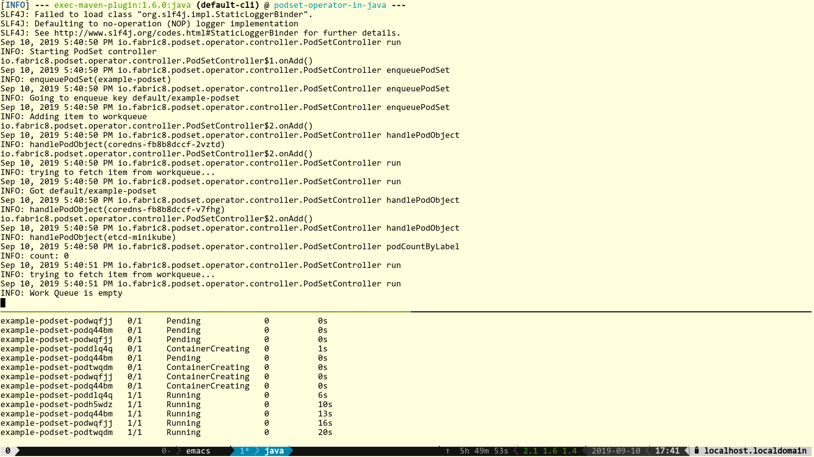 mvn exec:java -Dexec.mainClass=io.fabric8.podset.operator.PodSetOperatorMain