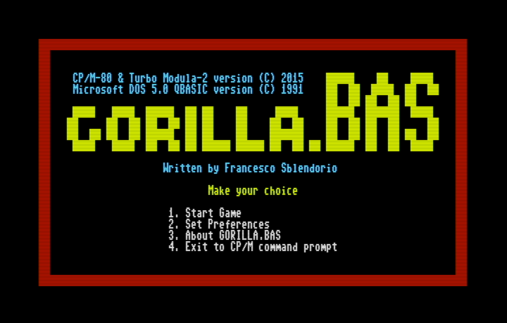 This is a Modula-2 (despite the name) implementation for CP/M of the classic "GORILLA.BAS" BASIC game included in MS-DOS 5.0.