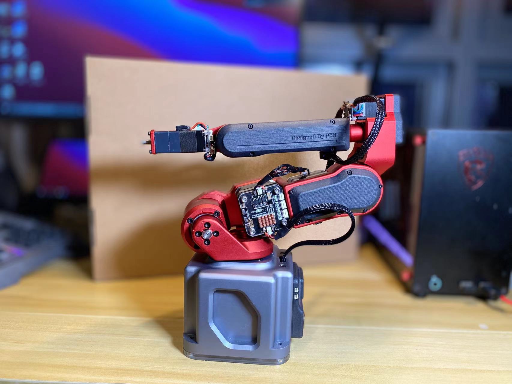 原始设计采用 步进电机 + Harmonic 谐波减速模组。若想降低成本,可改用 自制摆线针轮减速器 + 3D 打印 方案,整机物料费可压到 2000 元以内。