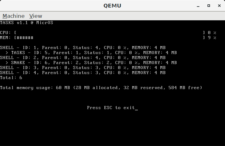 - Multitasking (with a primitive round-rubin scheduler)