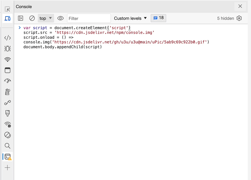 document.body.append(script)pnpm add console.imgimport 'console.img'