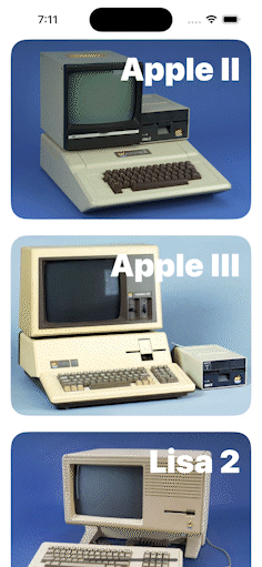 A common use case is when a FlowLink's view contains an image along with additional view elements, but you only want the transition animation to emanate from the image, not the entire view containing the other elements. You can achieve this effect by adding a .flowAnimationAnchor() modifier to the view you want the transition animation to emanate from.